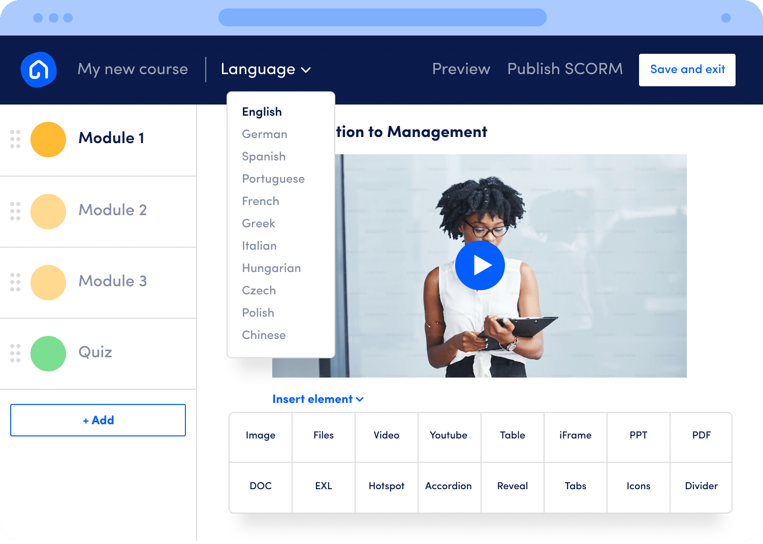 - Import and export SCORM