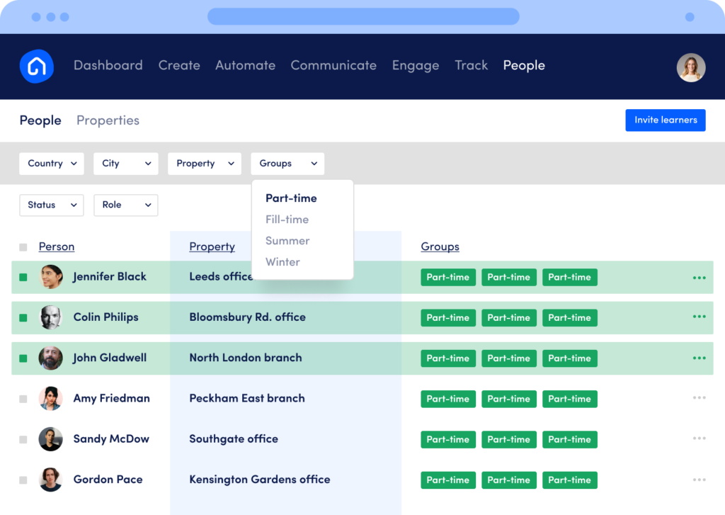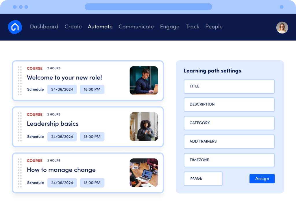 Create training, automate it, track assignments and a lot more.